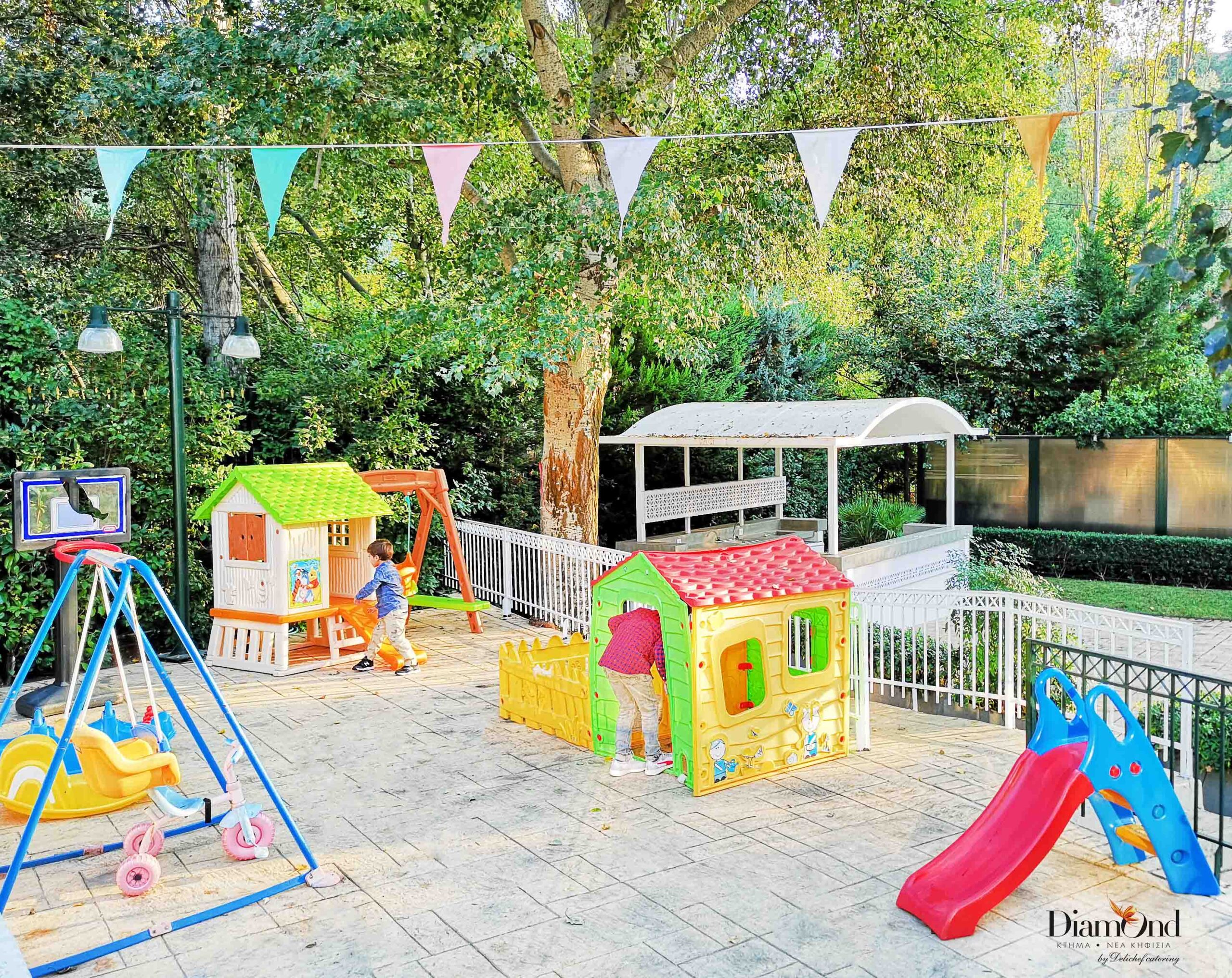 Ο ειδικά διαμοφωμένος κήπος μας & η κλιματιζόμενη φωτεινή αίθουσα μας, με τις ανοιγόμενες τζαμαρίες, διατίθεται για πρωτότυπα παιδικά πάρτι με απόλυτη ασφάλεια για τα παιδιά σας.